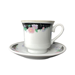 De porcelana 6 pocillos y 6 platos Diseño floreado Ideal para servir algo caliente con unas galletas